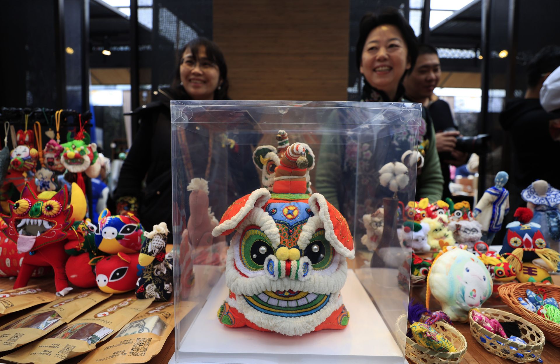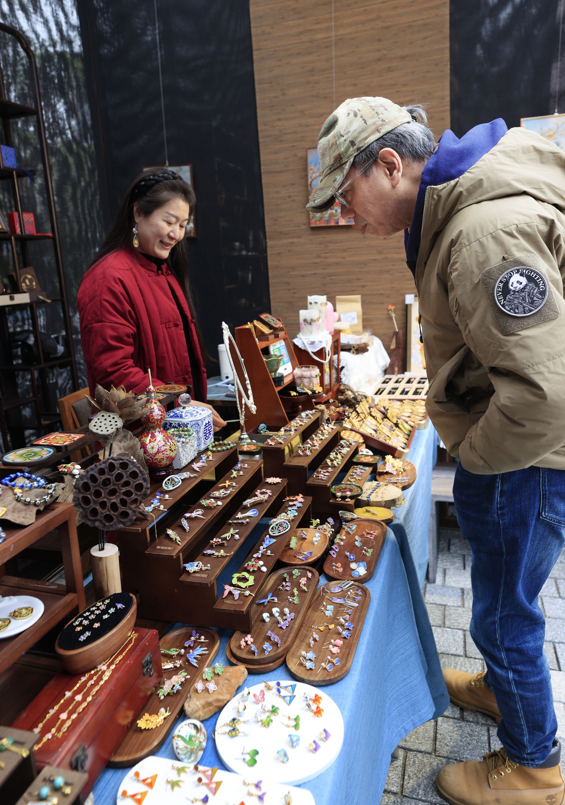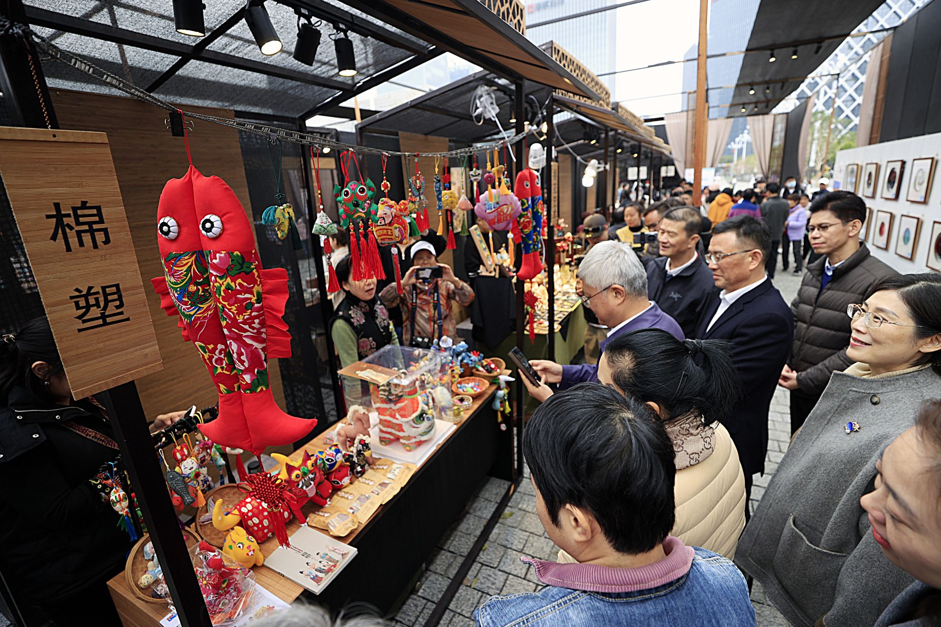 非遺技藝區集結了醒獅文創、棉塑、謝氏核雕等手工藝品展示。景泰藍掐絲技藝、纏花藝術等非遺項目的傳承人現場展示絕活,指尖流轉間勾勒出流光溢彩的紋樣與形態逼真的花鳥蟲魚。