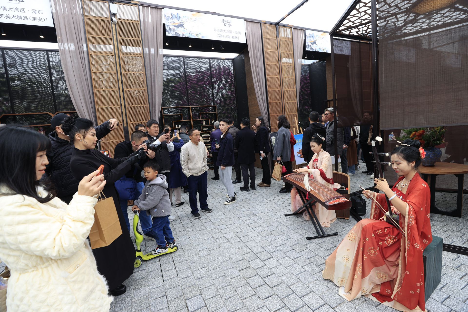 「9+2城市展」生動詮釋了大灣區的文化凝聚力。廣東肇慶端硯、佛山藤編、澳門「媽閣文創」等特色展位讓市民親手觸摸不同城市的溫度。愛心義賣區展出了寶安區社會福利中心特殊群體的優秀藝術作品,吸引眾多市民駐足欣賞。夜間文藝嘉年華同樣精彩。非遺工夫茶會專區全天候開放,傳承人現場演示茶藝。