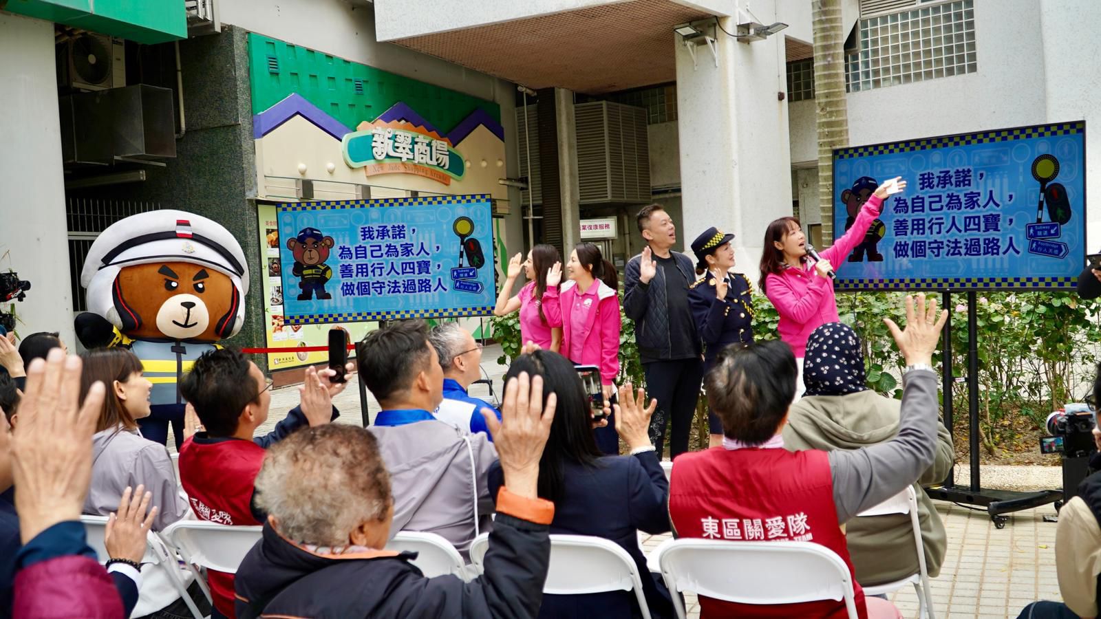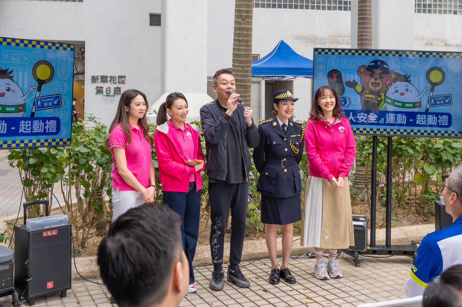 香港警務處交通總部於今日(29日)在柴灣地鐵站附近舉行道路安全宣傳活動,聯同一眾藝人包括向海嵐、謝雪心、邵珮詩、王殷廷及李霖恩,向市民尤其是長者灌輸安全過路的資訊。