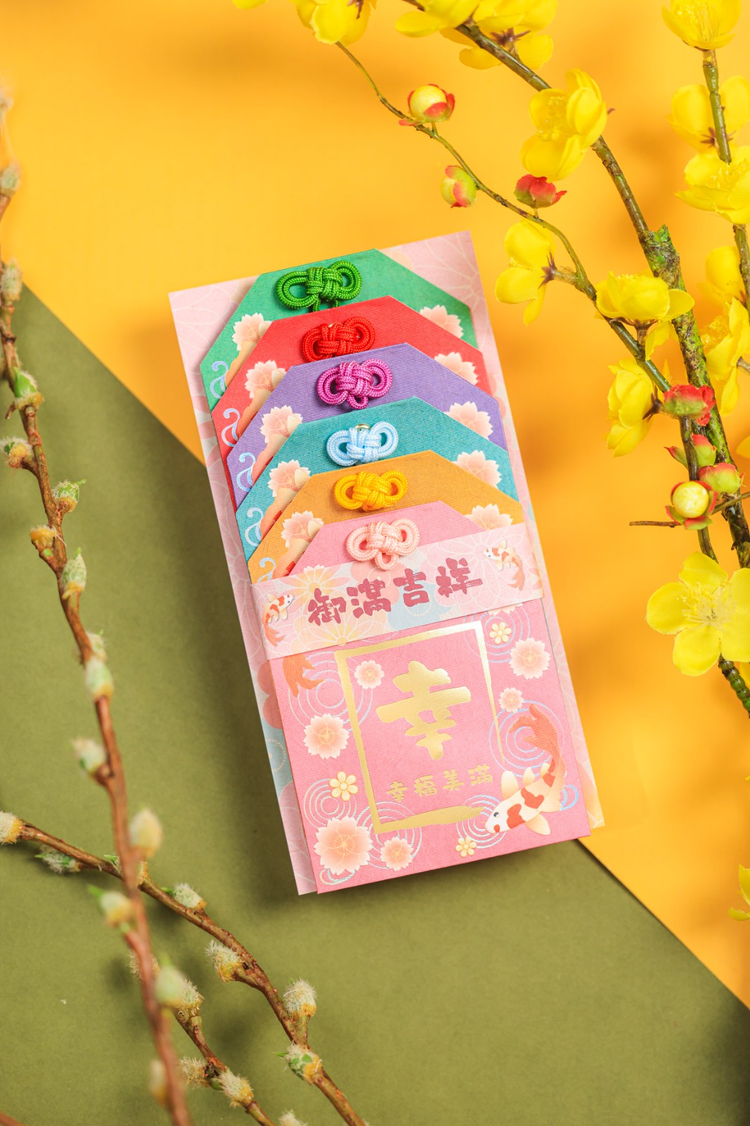 若想尋找款式少見的利是封,不妨留意新鴻基地產旗下五大商場——北角匯、MIKIKI、PopWalk天晉滙、荃錦中心及新領域廣場攜手推出限量版「錦鯉迎春御吉祥」利是封。設計以「錦鯉御守」為主題,將滿載祝福的字句刻印於六款精緻立體的利是封面上,寄寓六六大順的平安與吉祥,祝願新一年福澤安康。