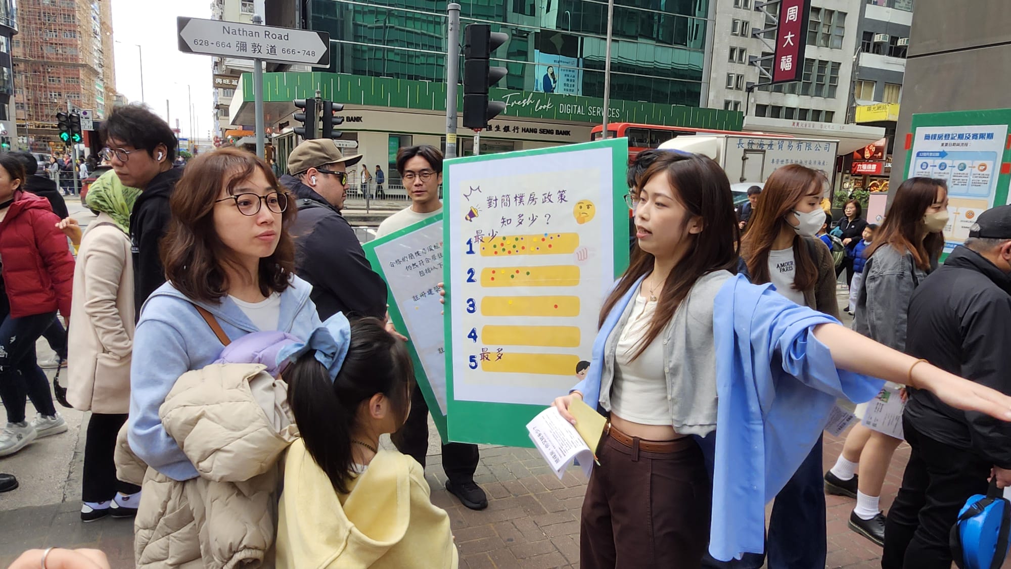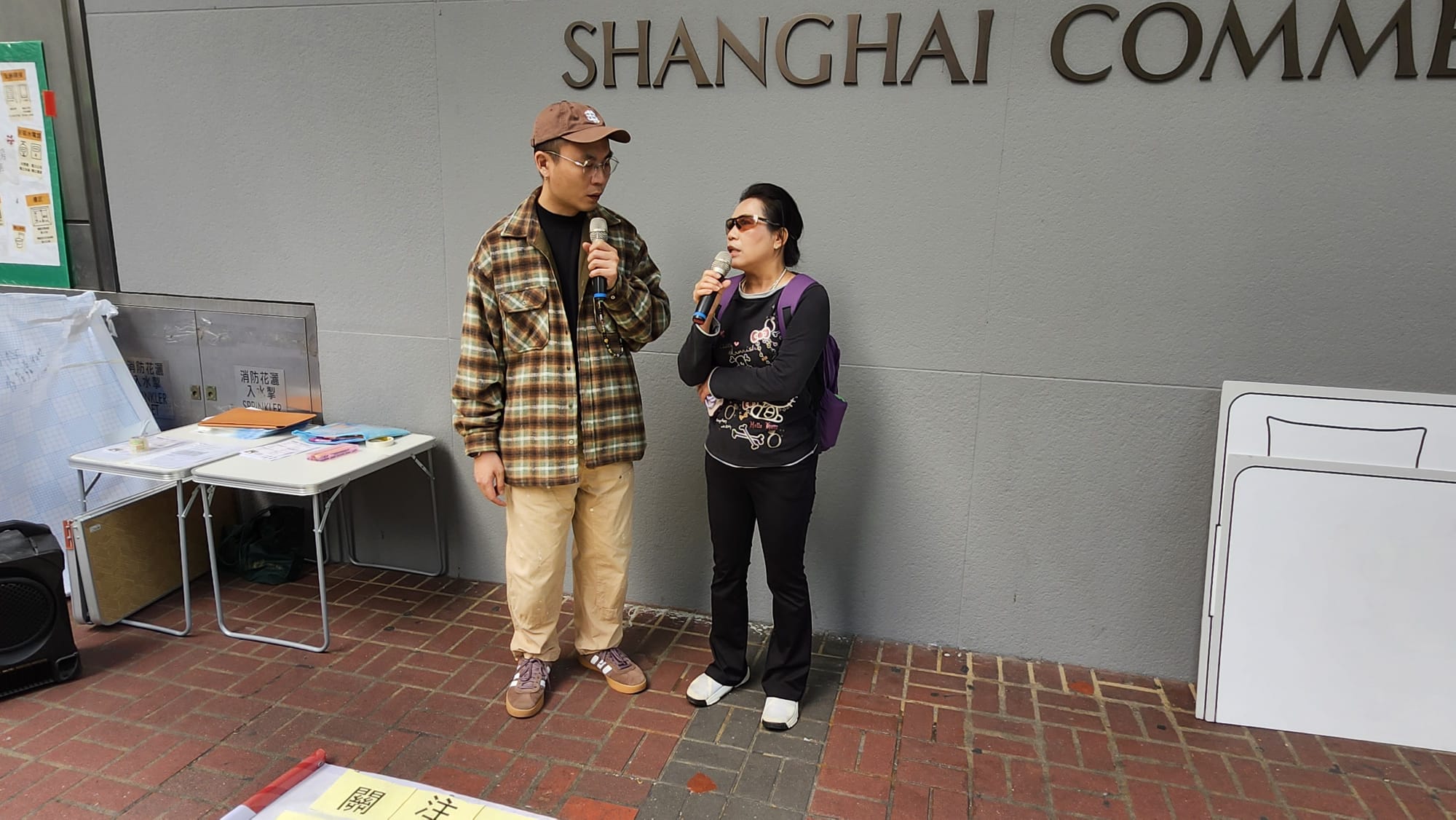 梁小姐(右)今午在街站上講述自己租住劏房的感受。