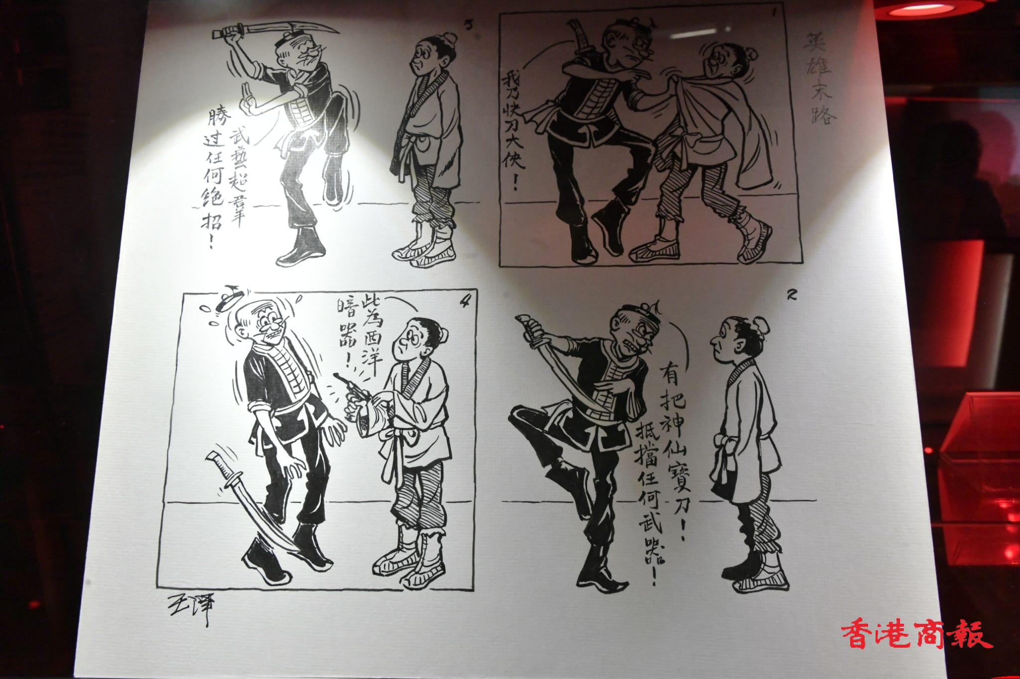 本次展覽,香港文學館特別與香港經典漫畫「老夫子」跨界合作,藉由老夫子、大番薯等經典角色,展開的一段原創武俠奇遇,展現香港新派武俠小說的發展脈絡、文本特色及名家風采。