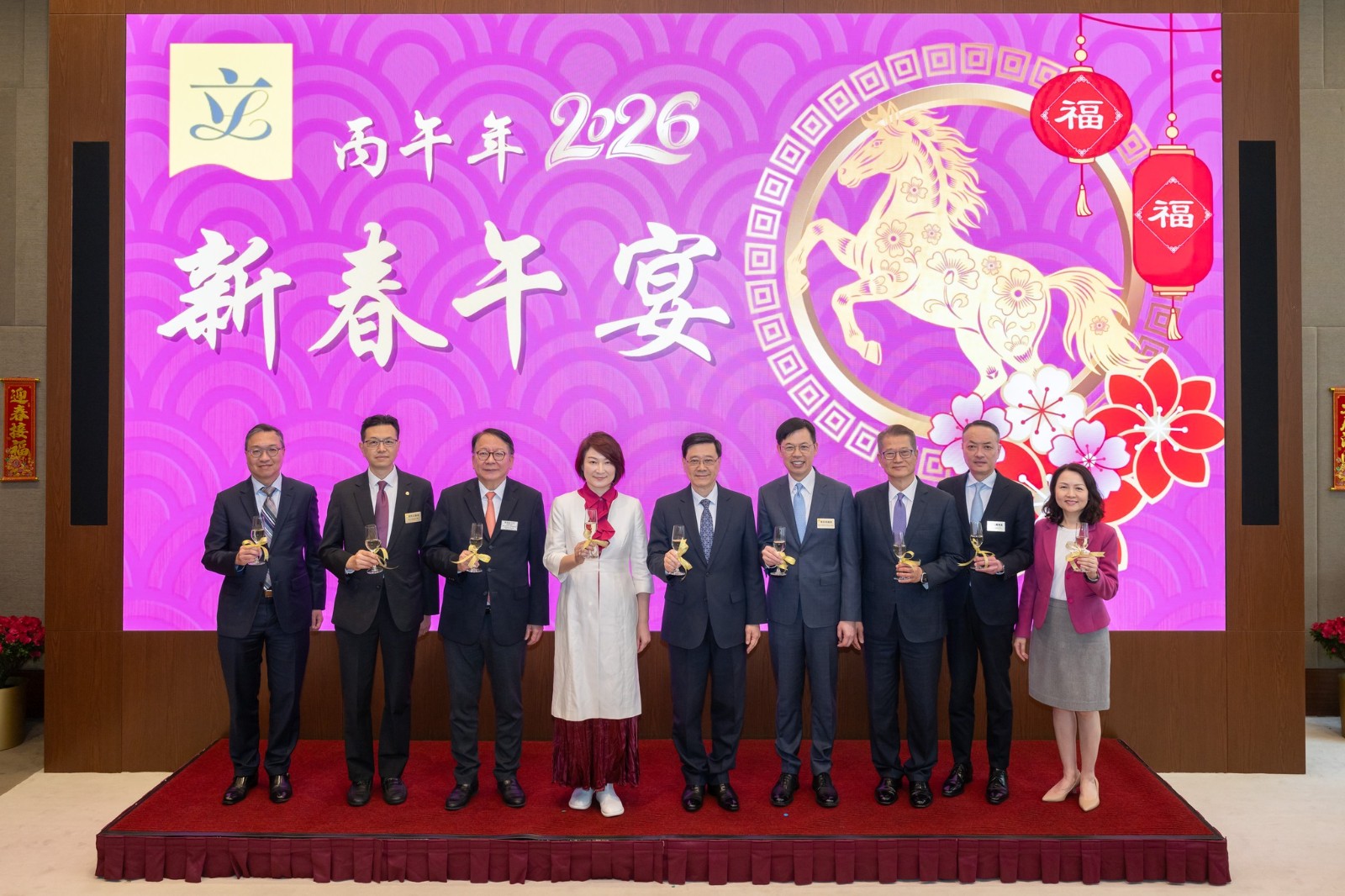 立法會主席李慧琼(左四)和特首李家超(中)等政府官員出席新春午宴。(李慧琼Facebook)