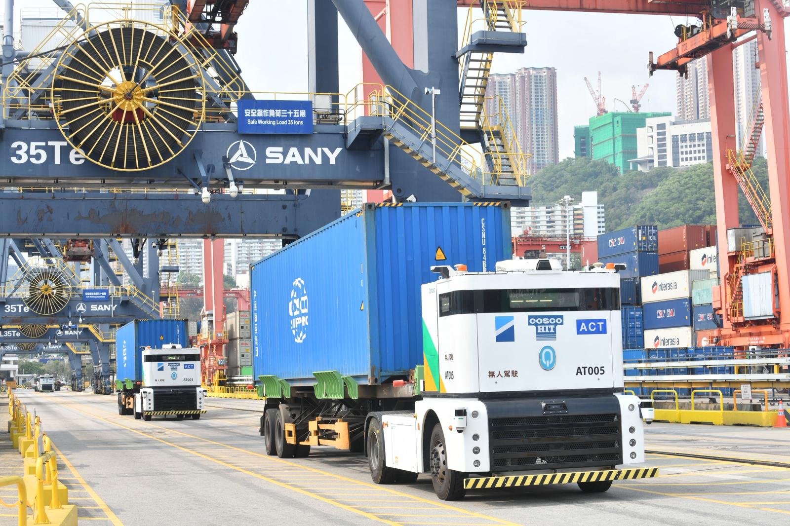 林偉駒強調,安全非常重要,因此每一台AT配備了多重感應系統,背後亦有一連串系統,實時監察每一台AT運作,確保它(運作)是安全,由於有眾多系統監察和運作,可以大大減少運輸車輛在貨櫃碼頭,因為人為因素產生一些操作風險,可以提升碼頭這方面的安全水平。(記者 葉家亨、鍾柏汶、崔俊良)