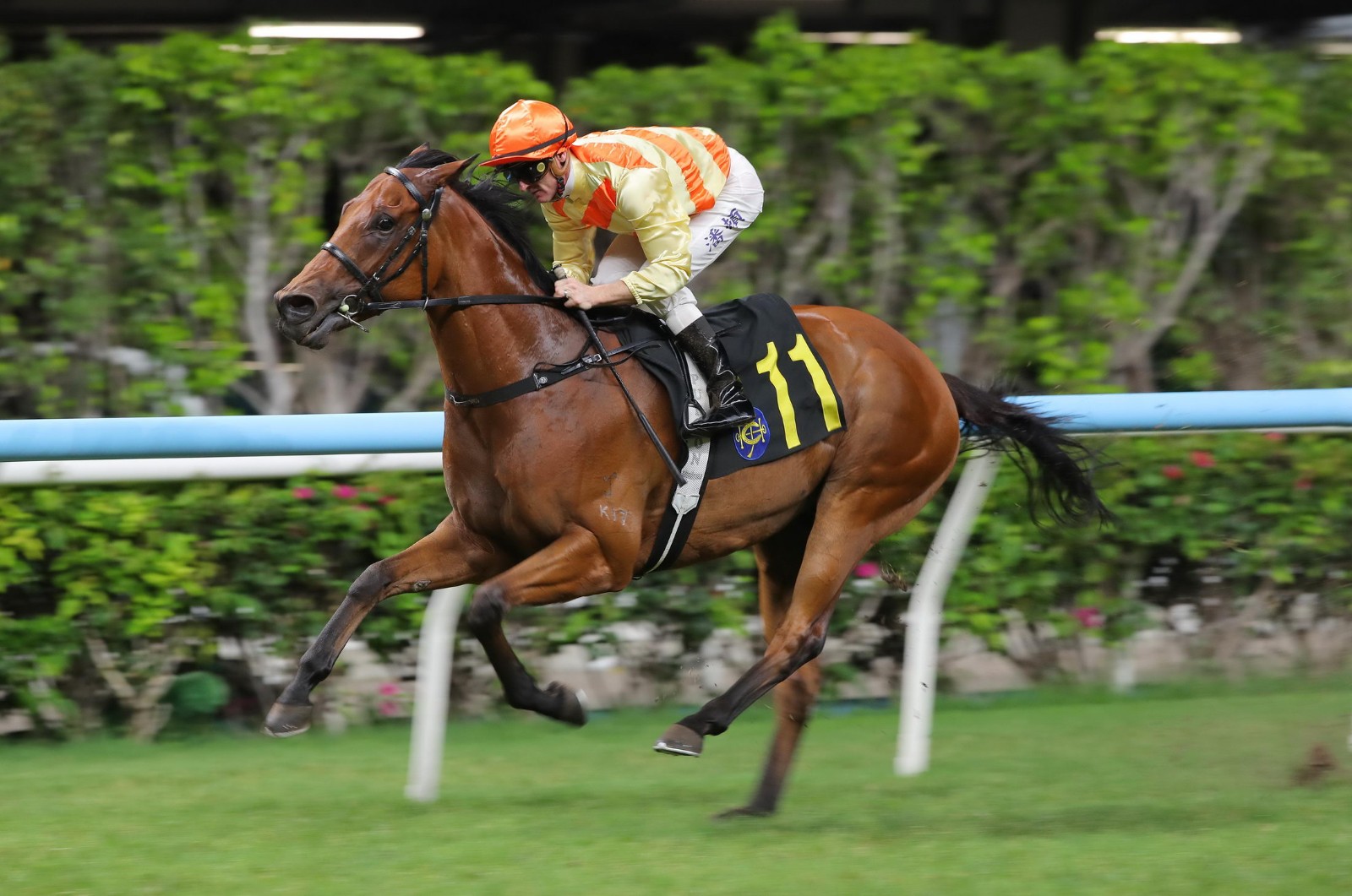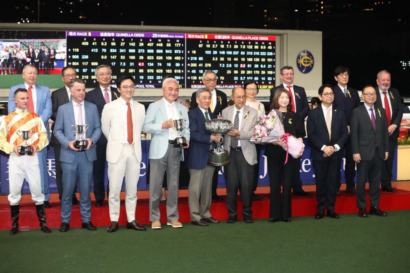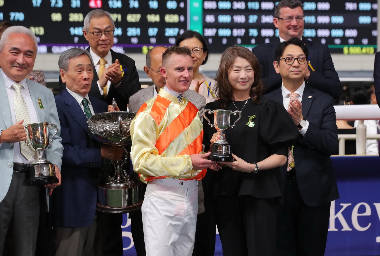 周三晚(22日)跑馬地馬場舉行9場賽事,第五場四班1200米西洋會挑戰盃,黎昭昇訓練的「雷神太保」配上潘頓而來,人馬勇奪錦標。潘頓賽後將獎盃,送贈給現場支持自己的女粉絲,兼且與她合照。