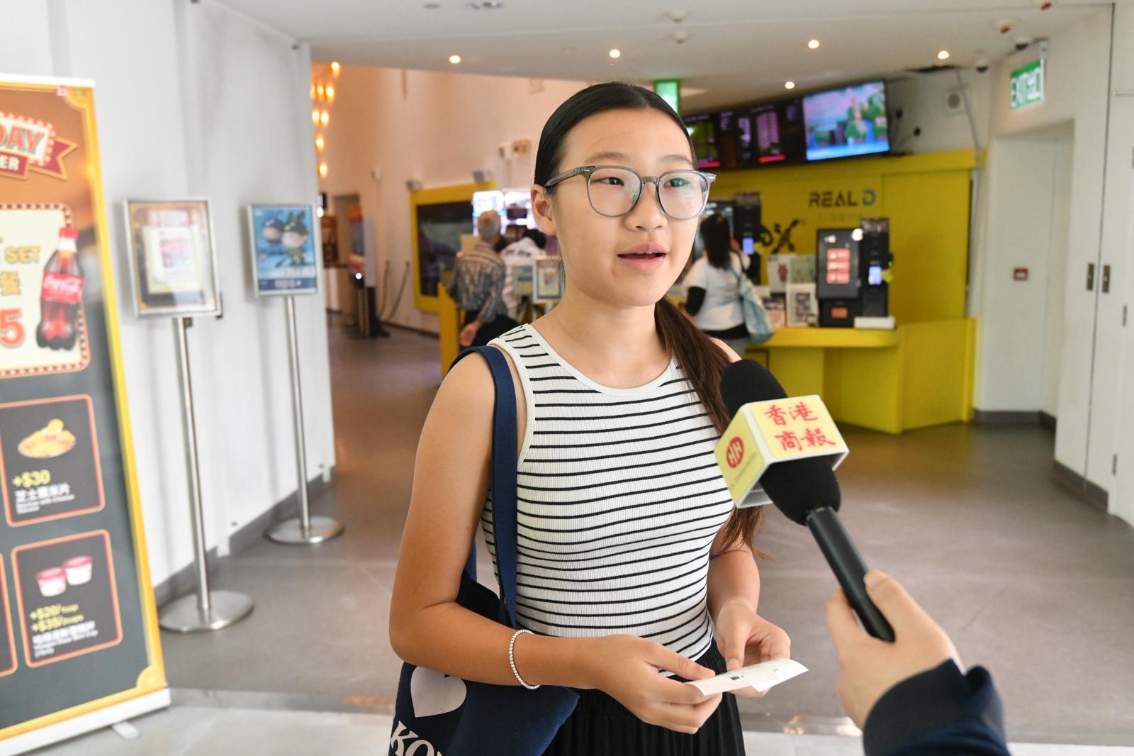 和媽媽入場觀看《超級瑪利歐銀河大電影》的張同學,在網上購買戲票,平均每一個月入場一次,她住在APM商場附近,自言是戲院的「熟客仔」。(記者 葉家亨、崔俊良)