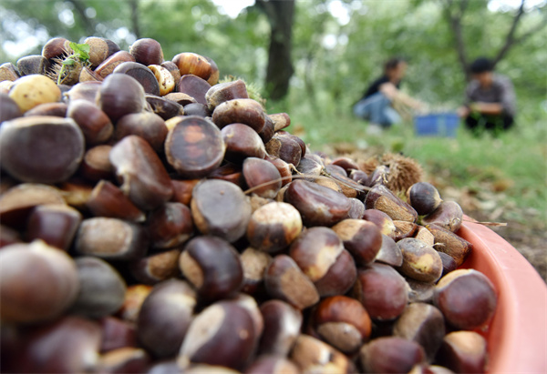 她說,現在正是板栗成熟季節,成熟期的板栗,有的自然脫落,掉落在地;有的還在樹上,需要用竹竿敲打樹枝,將板栗敲下來。由於板栗外殼帶刺,還需要一手帶着手套,一手拿着夾子夾取板栗,「現在栗子上市價在6元左右一斤,我種了40畝板栗樹,年產量能達到2.4萬斤。」魯春艷說,下一步她將更新板栗品種,把板栗產業做大做強。