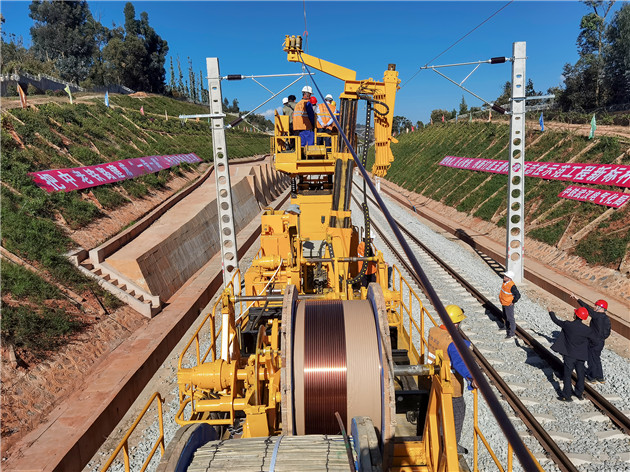 中老鐵路雙線區段送電成功。(中國鐵路昆明局集團供圖)