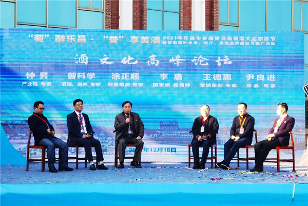 本次活動還舉行了葡萄酒文化論壇,來自我國葡萄酒領域的鐘昇、曾科學、塗正順、李唐、王德惠和尹良進等6位專家就刺葡萄酒釀造、營養價值及行業發展等話題進行了現場研討。