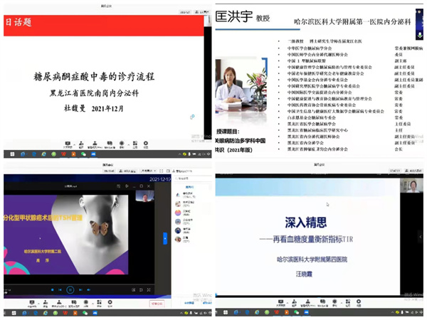 哈醫大一院內分泌科主任博士生導師匡洪宇教授;哈醫大二院內分泌科主任博士生導師喬虹教授;省醫院內分泌科主任段濱紅教授;哈爾濱醫科大學附屬第四醫院內分泌三科主任閆爽教授;黑龍江省中醫藥科學院副院長蔡蕭軍教授;哈爾濱醫科大學附屬第四醫院內分泌科主任成志鋒教授;哈爾濱醫科大學附屬第四醫院內分泌科二病區主任汪曉霞教授;哈爾濱醫科大學附屬第二醫院內分泌科三病房副主任高萍教授;哈市第一醫院內分泌科一病房主任柳傑教授;黑龍江省醫院南崗院區內分泌科主任杜馥曼教授運用圖文並茂的形式,為「雲平台」的與會學者生動剖析並深入探討了《糖尿病相關眼病防治多學科中國專家共識(2021年版)》、《特發性低促性腺激素性性腺功減退症的診斷和治療》、《中國2型糖尿病防治指南》、《天然植物藥開啟降糖新篇章》、《早期干預,減重先行》、《多囊卵巢綜合症的診治進展》、《健臻優選,精準智信》、《甲亢熱點關注-特殊人群甲亢管理》、《深入精思—再看血糖度量衡》、《DTC術後的TSH管理》、《糖尿病酮症酸中毒的診治流程》的相關話題,內容詳實,主題新穎,引導性、實用性強,平台上學者興趣濃厚,通過留言區暢所欲言,交流氣氛熱烈、緊湊,受到與會學者的高度好評。
