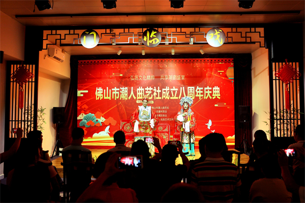 昨日(18日),佛山市潮人曲藝社在佛山戲臨門戲曲藝術空間舉行了成立八周年慶典活動,來自珠三角各市的潮汕籍鄉友及戲曲發燒友們近百餘人共聚佛山,觀賞了一場由專業潮劇演員和業餘愛好者共同獻上的潮劇文化視聽大餐。此次活動邀請了林麗麗、楊舜平、孫桂濤等知名潮劇演員,來自廣州、肇慶、中山以及佛山的潮劇業餘愛好者們參與了此次表演,為現場觀眾獻上了一曲曲經典的潮州戲曲。