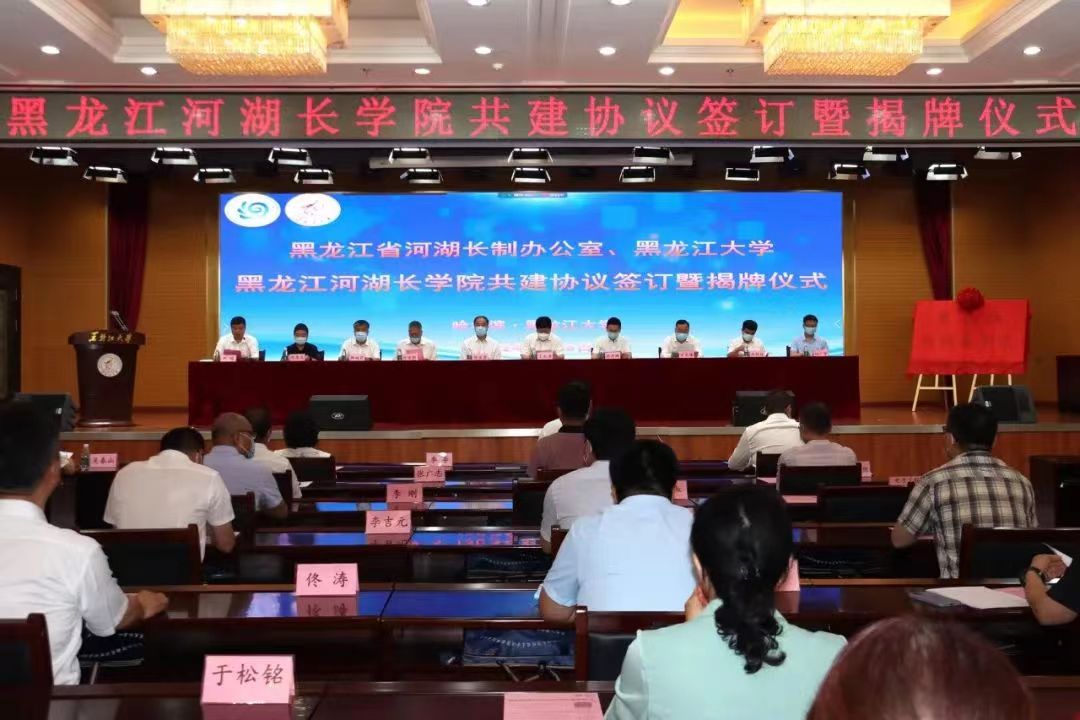 6月28日上午,由黑龍江省河湖長制辦公室、黑龍江大學共同主辦的黑龍江河湖長學院共建協議簽訂暨揭牌儀式在黑龍江大學主樓一樓報告廳舉行。黑龍江省水利廳黨組書記、廳長、省河湖長制辦公室常務副主任侯百君,黑龍江大學黨委書記王永清、黑龍江大學校長付宏剛等出席揭牌儀式。黑龍江大學副校長、黑龍江河湖長學院院長嚴明主持揭牌儀式。儀式通過「線下+線上」直播的方式舉行。