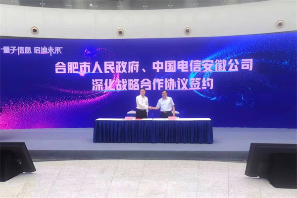 8月26日,由合肥市人民政府、中國電信安徽公司聯合主辦,合肥市數據資源局、合肥市經濟和信息化局、中國電信合肥分公司共同承辦的「合肥量子城域網開通暨合肥市人民政府、中國電信安徽公司深化戰略合作協議簽約活動」在合肥市政務中心陽光大廳正式舉行。安徽省委常委、合肥市委書記虞愛華,省數據資源管理局黨組書記、局長朱誠、省通信管理局黨組書記、局長陳岩松、省經濟和信息化廳黨組成員、副廳長柯文斌、省科學技術廳黨組成員、副廳長姚群等相關省直廳局領導出席活動,中國電信集團黨組成員、副總經理唐珂通過視頻方式出席並致辭。