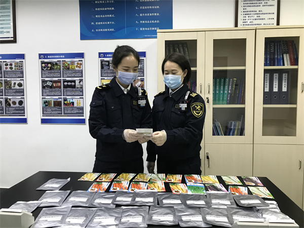 廣州海關依託「智能審圖」檢疫算法新技術,在進境郵遞渠道截獲攜帶檢疫性有害生物馬鈴薯斑紋片病菌的種子(王嘉媚攝)