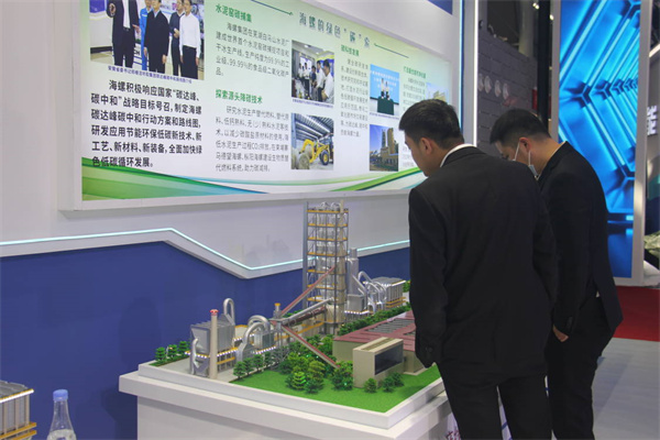 頂圖:參觀者正在參觀海螺集團展示的相關生產線系統模型(王葉華/摄)