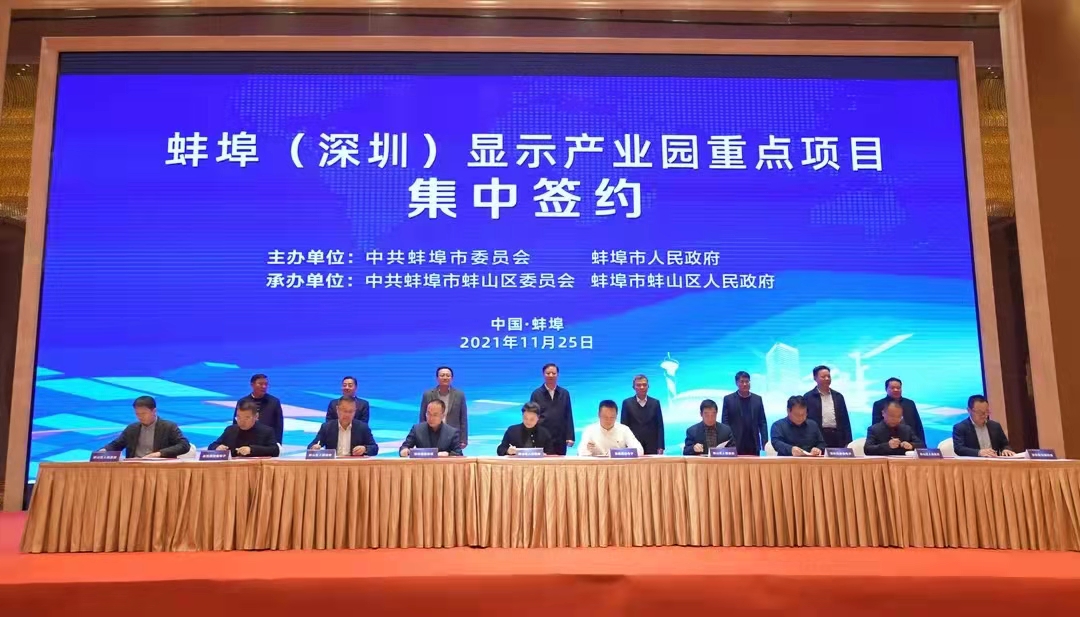 11月25日下午,蚌埠(深圳)顯示產業園重點項目集中簽約活動舉行。此次集中簽約項目共5個,分別是奧源電子、富創通科技、海勤科技、高美福電子、惠隆鑫電子項目,佔地約300畝,總投資超22億元。