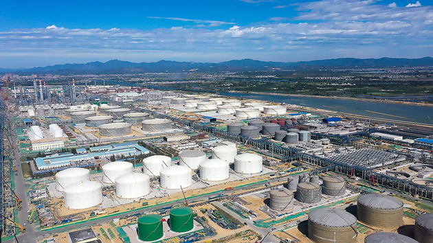 值得一提的是,為什麼有些儲油罐看起來像沒有封頂呢?據介紹,10萬立方米原油罐採用浮式頂,沒有註油時,浮式頂墜在罐底;往油罐註油以後,浮式頂就會重新浮升起來。(記者 莊志彬 通訊員 佟曉光 高雲龍)