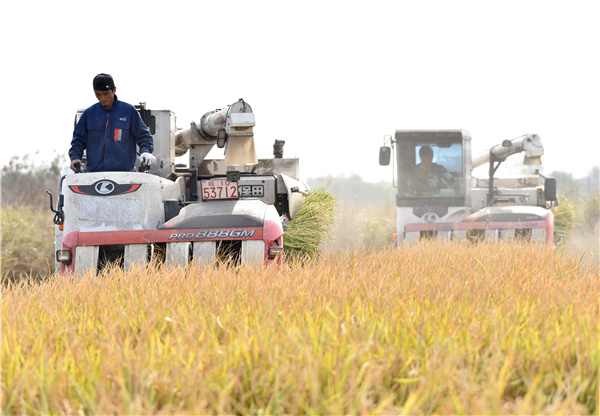 眼下,安徽省巢湖市「稻蝦共作」水稻收割工作已經進入尾聲。連日來,巢湖市壩鎮林成種養殖專業合作社,稻蝦共養大戶褚昌林趁着晴好天氣,組織收割機對稻蝦田裡的優質秈稻進行最後階段的收割,確保顆粒歸倉。