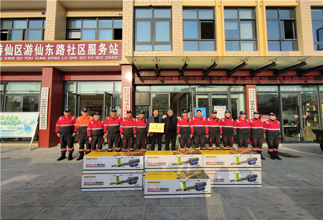 11月24日,四川省綿陽市遊仙東路社區向綿陽神鷹紅十字救援隊捐贈7台煙霧水霧兩用消殺機。據悉,新冠疫情以來,神鷹紅十字救援隊免費為多個社區、車站、幼兒園等場所進行防疫消殺,遊仙東路社區就是受益者之一。