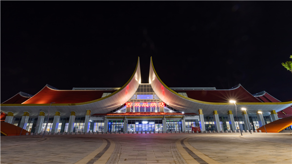 西雙版納站:設5台7線,屋頂造型猶如翩翩起舞的開屏孔雀,完美呈現了「雀舞彩雲、靈動版納」的設計理念。