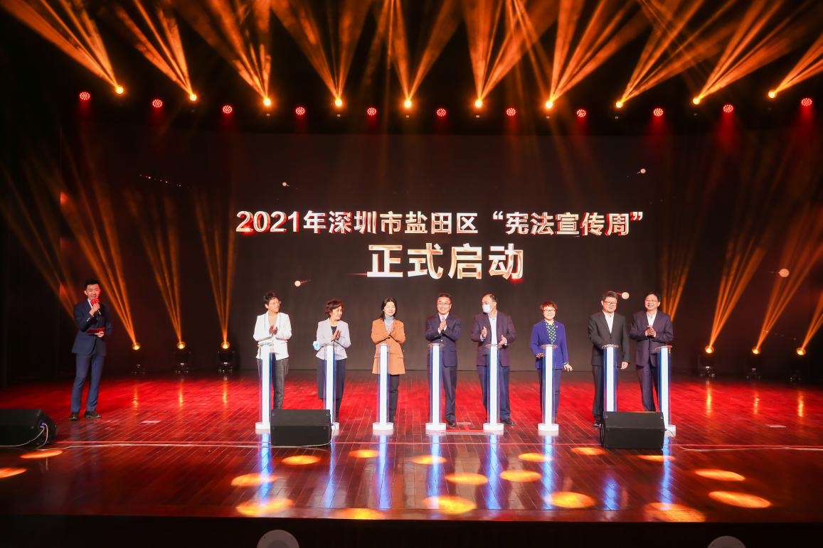 12月4日是我國第八個國家憲法日,為弘揚憲法精神、維護憲法權威,12月3日上午,深圳市鹽田區2021年「憲法宣傳周」啟動儀式在鹽田會堂舉行。深圳市司法局一級調研員黃祥釗,鹽田區委副書記、政法委書記、依法治區辦主任谷雲宏,區委常委、常務副區長胡朝陽,區人大常委會副主任司馬冰,區政協副主席陳紅,區法院院長耿焱,區檢察院檢察長陳佩群出席活動。