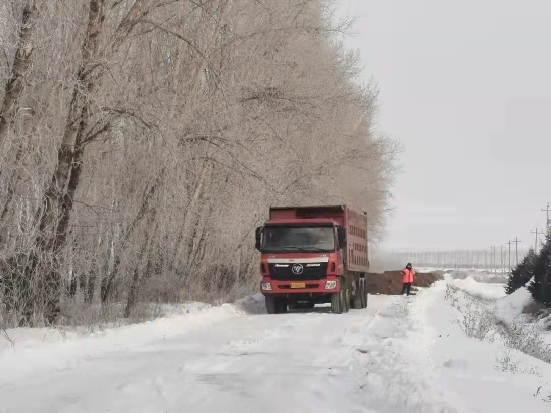 眼下正是寒冬時節,寒風撲面,路上難見行人。但在北大荒農業股份慶豐分公司第八管理區的田間道路,卻是機車轟鳴,數台運料車正在趕往施工現場對受損田間道路進行修復,為2022年春耕生產做好準備。