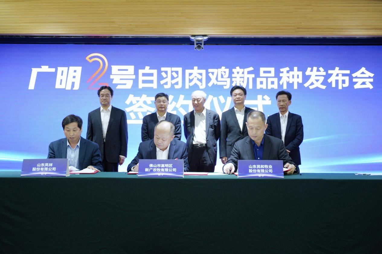 「廣明2號」的育成,是佛山市高明區新廣農牧有限公司(下稱「新廣農牧」)堅守十年,在農業農村部、中國農業科學院、廣東省農業農村廳等多方支持下,與牧醫所所深度融合、協同創新、潛心躬耕的初步成果。該品種通過國家畜禽遺傳資源委員會審定,標誌着我國白羽肉雞育種攻關實現從0到1的實質性突破,逐漸打破國外在白羽肉雞領域對種源的壟斷,充分展示廣東畜禽種業強省的擔當與作為。