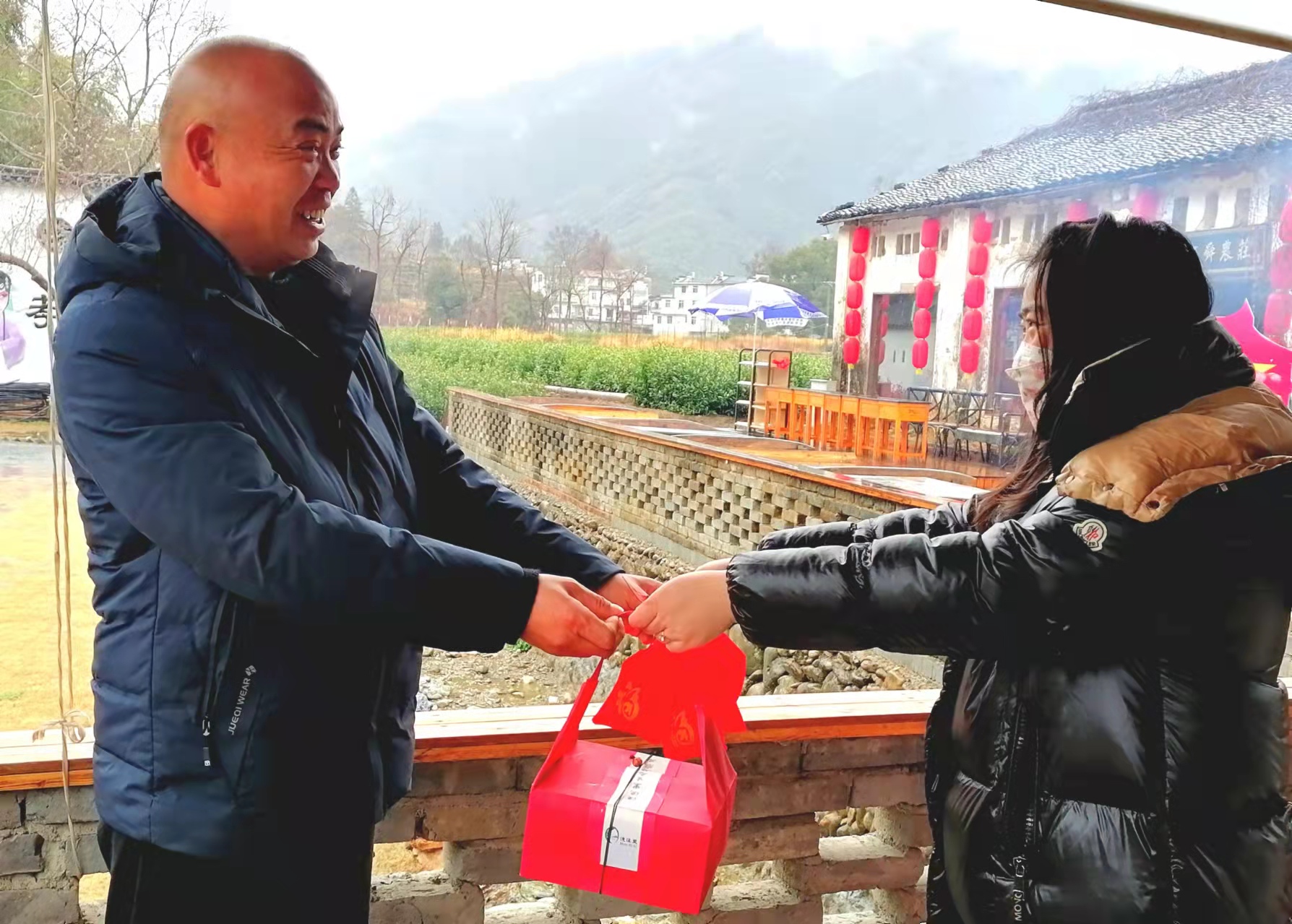 連日來,安徽黃山市祁門縣文旅體局組織人員深入牯牛降觀音堂、馮家頂民宿、漫溪裏生態旅遊度假農莊等景區、景點,在落實好春節旅遊常態化疫情防控的同時,送去“福”文化打卡裝飾版畫和相關禮品,給春節旅遊增添喜慶的色彩。