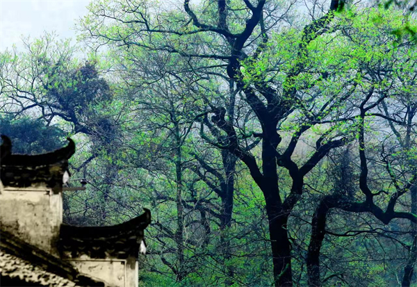 樹幹枝葉與屋頂均選用黑色來表現,使這幅以亮色為主的畫面更加沉穩耐看,勾得觀者無盡情思。