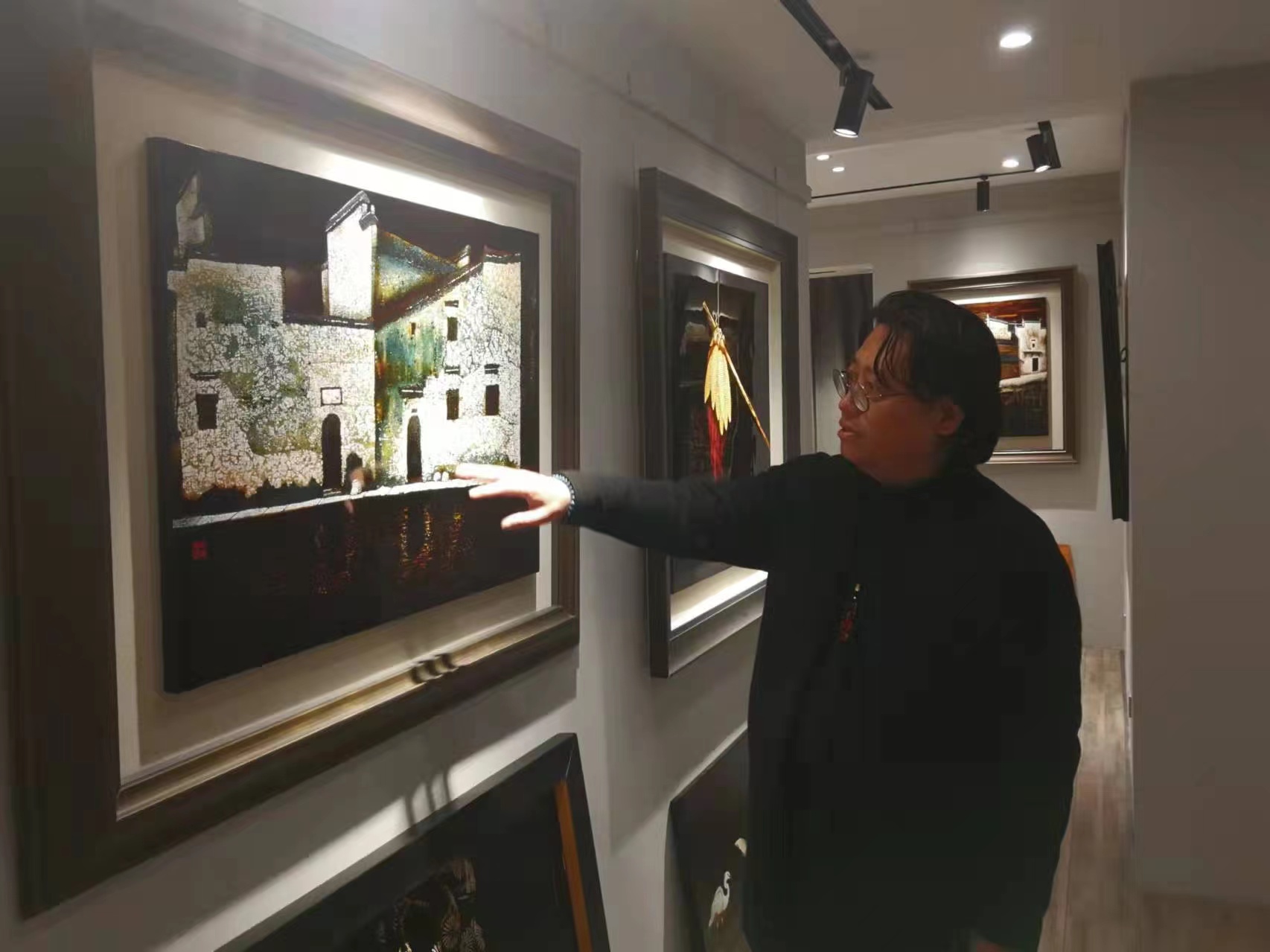 徜徉展廳,談藝論道,《月映徽州》《希望》《飽經滄桑》《歸》《山裏人家》等漆藝作品琳琅滿目,姿彩動人。