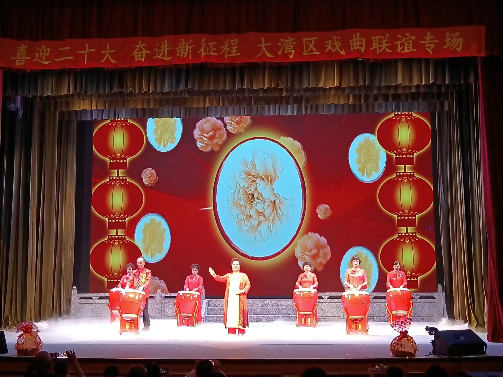 舞台上,專業演員們粉墨登場,唱腔清麗婉轉、身段優美自如,樂曲鏗鏘悠揚。林麗麗、孫桂濤老師表演的潮劇《京城會》和《愛歌》,雋永纏綿,浪漫唯美,贏得觀眾陣陣掌聲;楊舜平老師表演的《尊一聲大老爺》、《此遭一定賺大錢》等潮汕鄉友熟悉的潮劇,其渾厚的唱腔引起現場強烈共鳴;由佛山潮人曲藝执行社长劉賽珍、中山市潮人海外聯誼會曲藝社代表黃宏東、葉曉容共同表演的潮劇《回書》選段,演員們的一招一式、一腔一韻扣人心弦,引得現場觀眾亦悲亦喜;來自廣州、肇慶和佛山潮人曲藝社的潮劇發燒友們還表演了觀眾們喜聞樂見的 《花好月圓春常臨》、 《夫妻恩愛百年長》、《羅帳張開似羅網》、《破鏡重圓人團圓》、《往事如煙不可追》、《姐妹重逢》、《洪湖水浪打浪》等新老潮劇。靈動的唱腔、絲絲入扣的情節、精緻的舞美,向觀眾展現了現時代的潮劇風采和魅力,贏得滿堂喝彩。