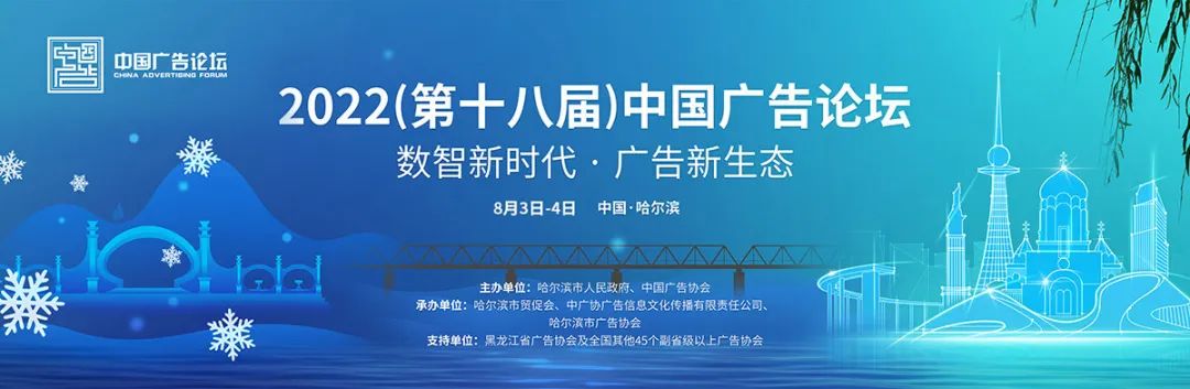 「數智新時代,廣告新生態。」2022(第十八屆)中國廣告論壇將於8月3日-4日在哈爾濱舉辦。
