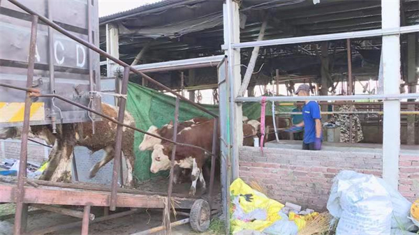 7月22日,瀋陽市遼中區茨榆坨街道太平村的養殖戶家裏,正忙碌的將活蹦亂跳的存欄豬牛引入運輸車輛,準備為它們搬至「新家」。