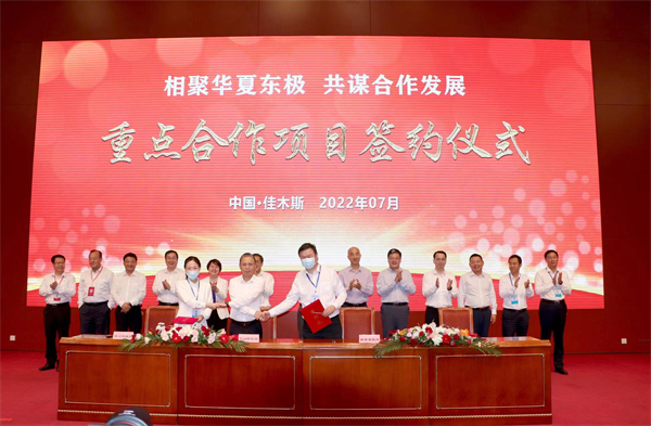 飽含着央企和行業重點企業全力支持東北振興的拳拳之心,承載着佳木斯對經濟社會趕超跨越發展的熱切期待,凝聚着市企攜手並進共同發展的美好景願,7月30日上午,「相聚華夏東極,共謀合作發展」——2022年佳木斯市央企合作暨重點合作項目簽約活動盛裝啟幕,華潤(集團)有限公司、中國中車集團有限公司、國家電力投資集團有限公司、中國國際工程諮詢有限公司、國家能源投資集團有限公司、中國建材集團有限公司等央企精英和環城旅遊發展有限公司、中信建設有限責任公司、隆基綠能科技股份有限公司等行業翹楚雲集佳木斯,共敘合作友好情誼、共商合作發展大計、共謀合作共贏新篇。這是佳木斯市深入貫徹落實黨中央「穩住經濟」的重大決策部署和習近平總書記對黑龍江省提出「五個要發展」重要講話精神,全面加強企地合作的一次產業對接大會、戰略合作交流盛會,必將開啟市企合作發展新篇章,為奮進中的佳木斯提供巨大助力和重要支撐。