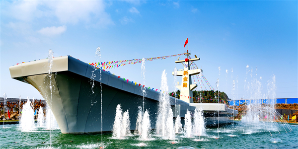 頂圖:象徵着「新金路集團」企業文化的大船坐落於金路樹脂生態公園