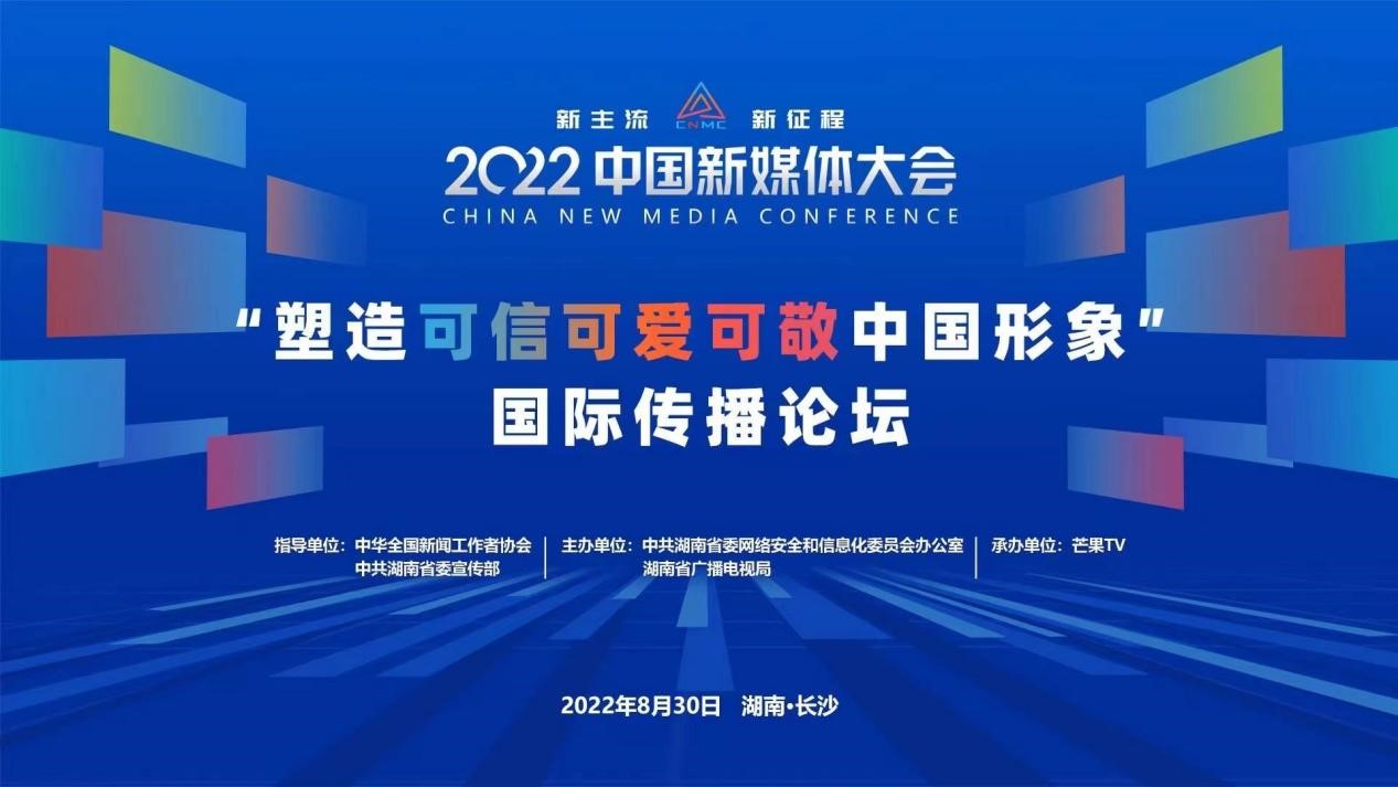 8月30日下午,2022中國新媒體大會「塑造可信可愛可敬中國形象」國際傳播論壇在湖南國際會展中心舉行。本次論壇由中華全國新聞工作者協會、中共湖南省委宣傳部指導,中共湖南省委網絡安全和信息化委員會辦公室、湖南省廣播電視局主辦,芒果TV承辦。