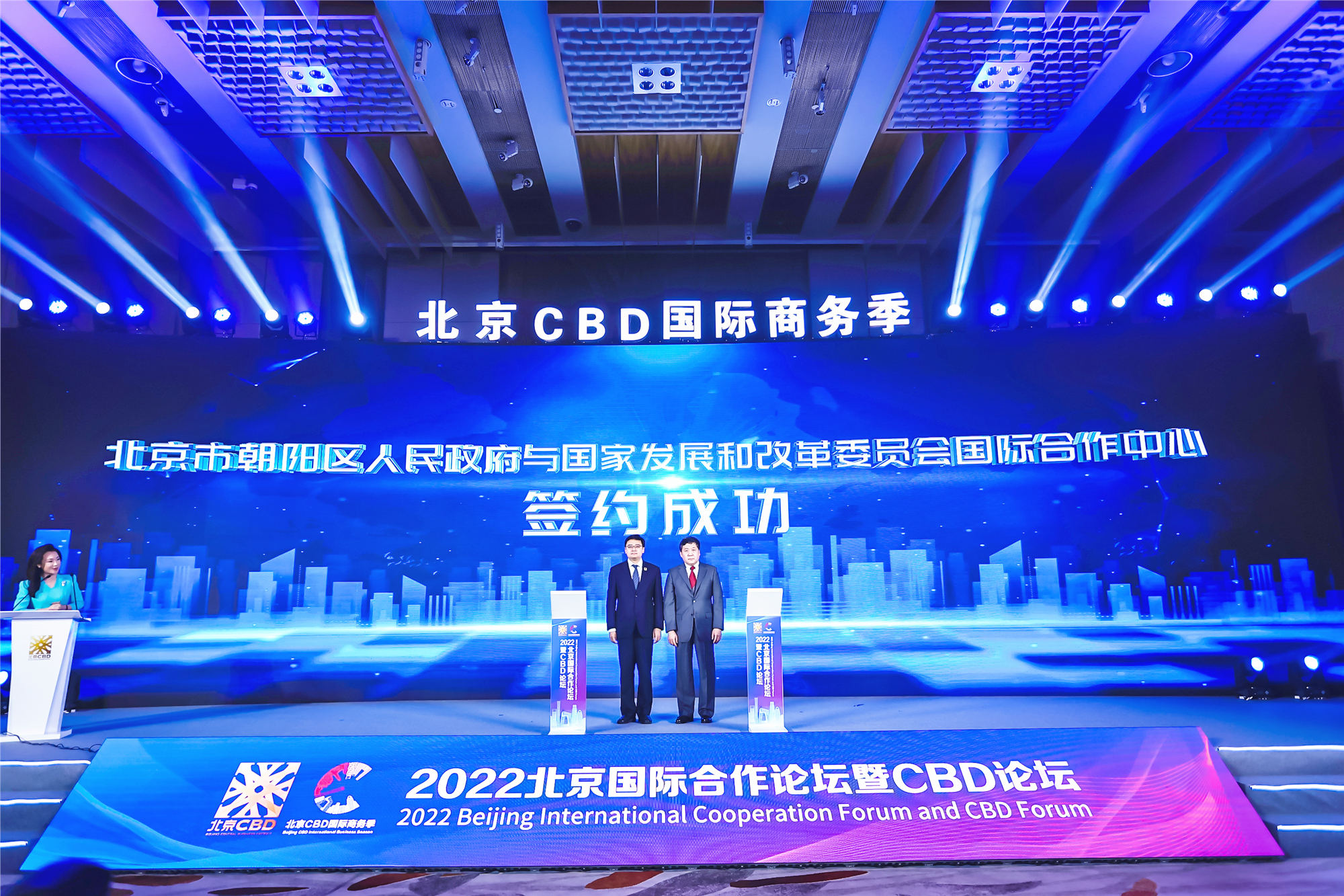 9月6日上午,由國家發展和改革委員會國際合作中心、中國公共外交協會指導,北京市朝陽區人民政府、北京市發展和改革委員會、北京市人民政府外事辦公室共同主辦的2022北京國際合作論壇暨CBD論壇在北京銀泰中心正式拉開帷幕。本屆論壇以「深度融入全球合作 提升城市開放活力」為主題,聚焦全球化背景下的商務區發展,充分挖掘北京CBD國際高端資源聚集優勢,促進各類國際要素融合發展,不斷提升北京CBD開放度與活力度。論壇上,北京市朝陽區人民政府與國家發展改革委國際合作中心戰略正式簽署合作協議,北京CBD發佈「三中心、兩平台」落地成果。論壇得到包括全球商務區創新聯合會、中國商務區聯盟等國家級平台和國際性組織參與指導支持。
