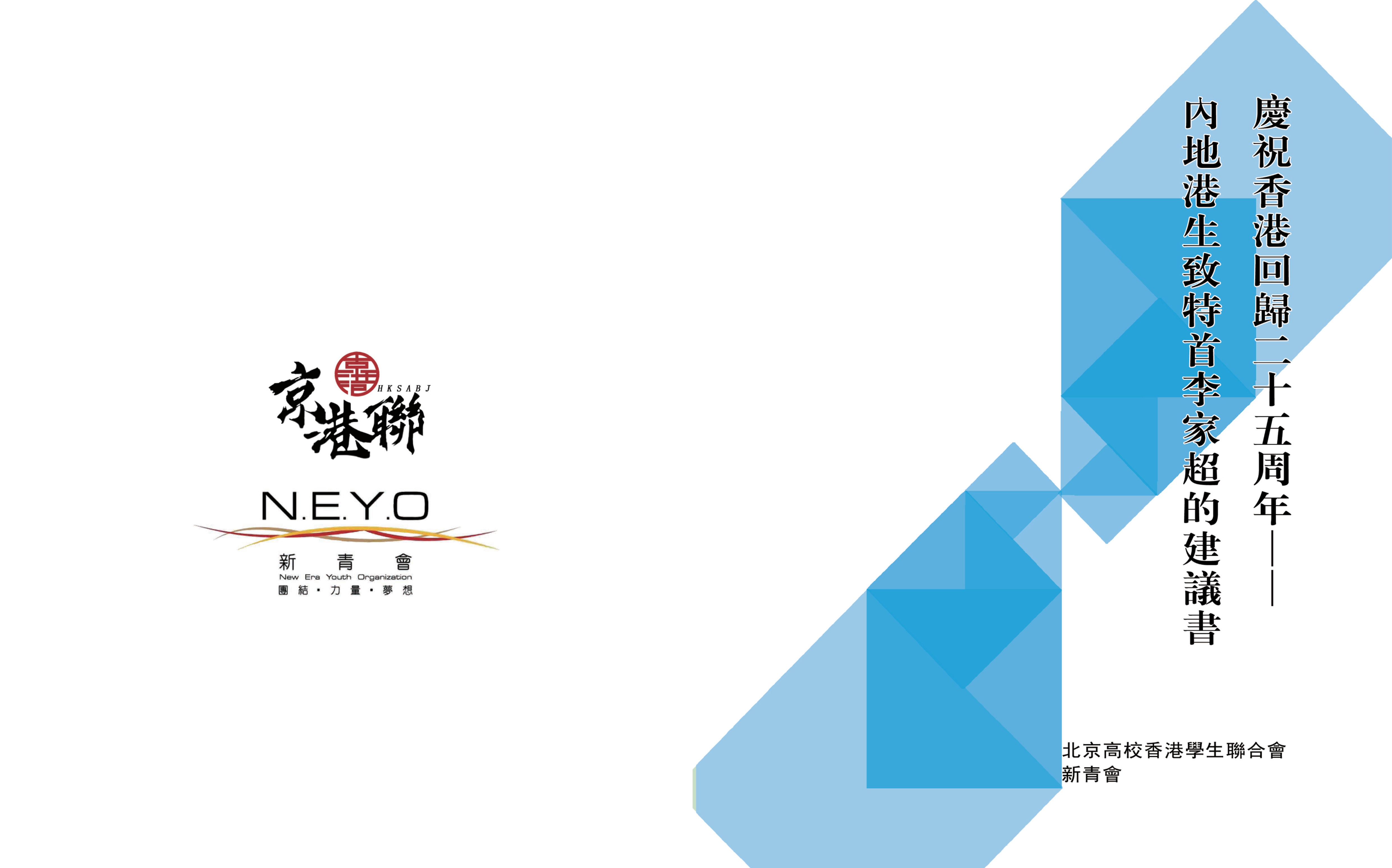 2022年9月26日,《內地港生致香港特別行政區行政長官李家超先生施政建議書》的遞交儀式在香港和北京通過線上線下同時舉行,香港會場位於特區立法會大樓會議室,香港民政與青年事務局局長麥美娟女士、副局長梁宏正先生、政治助理張進樂先生、香港立法會議員陳月明女士、MH、新青會副秘書長梁慧欣女士等人出席。北京會場位於香港特區政府駐京辦會議室,特區政府駐京辦主任梁志仁先生、中央人民政府駐香港聯絡辦公室北京聯絡部副主任張有才先生、京港聯副主席張敬游先生等人出席,會議由京港聯副主席黃爾諾先生主持。會議議程包括建議書背景介紹、內容介紹,麥局長和梁主任的點評、以及遞交儀式和總結髮言。