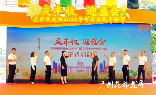 稻香魚肥、瓜果飄香。26日上午,廣州市花都區獅嶺鎮馬嶺村第四經濟社熱鬧非凡。 花都區慶祝2022年中國農民豐收節啟動儀式正在這裏舉行,市農業農村局三級調研員晉華義,花都區領導邢翔、程學晉、徐永生、徐容雅、盧日新,以及相關鎮街、部門負責人、農民代表參加啟動儀式。隨着參加活動的嘉賓共同啟動大屏手印,豐收節系列活動正式拉開序幕。