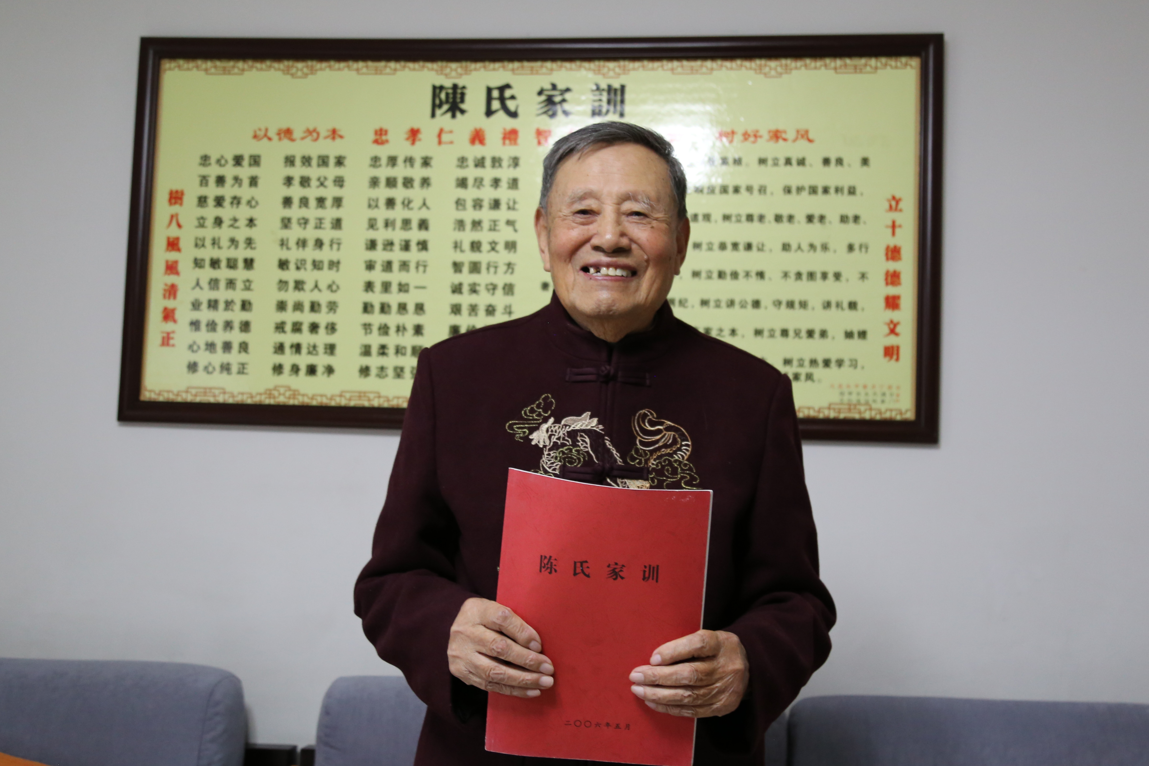「忠心愛國、報效國家……」《陳氏家訓》開篇便是教育子孫後代要「忠心愛國」。陳老說:「沒有國,哪有家啊!所以愛國必須放在第一條。」