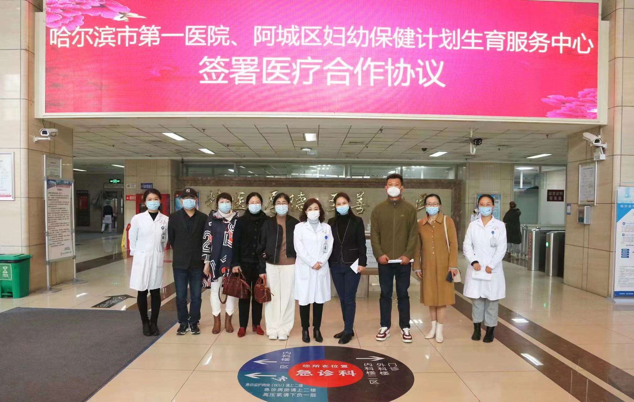 儀式上,武金玉詳細介紹了醫院概況、優勢學科、先進技術和專家團隊,着重介紹醫院婦產科、兒科等科室現狀,並代表哈爾濱市第一醫院與阿城區婦幼保健計劃生育中心現場簽署了醫療合作協議。協議簽署後,哈爾濱市第一醫院將向阿城區婦幼保健計劃生育中心提供實實在在的技術支持和業務指導,在醫療、技術、科研等方面優勢互補、共同提升;利用哈爾濱市第一醫院住培基地的優勢,協助培養專業人才;在學科體系建設方面從規劃、配備和技術開展方面提供支持和幫助;搭建遠程信息會診平台,為阿城區的老百姓,尤其是全區婦女兒童的健康提供有力保障。