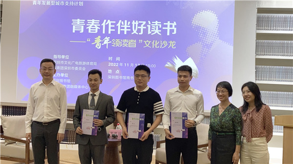 11月13日,「青春作伴好讀書—『青年領讀者』文化沙龍」活動在深圳圖書館舉行。該活動是深圳圖書館為慶祝中國共產主義青年團成立100周年於五四青年節策劃推出的「青年發展型城市支持計劃」五大主題活動之一,旨在充分發揮圖書館資源、平台和服務優勢,從終身學習和社會教育視角助力《深圳青年發展規劃(2020—2025年)》實施,通過樹立青年閱讀標杆人物,打造青年閱讀推廣品牌,讓閱讀成為青年的一種生活方式,促進青年與城市共成長。