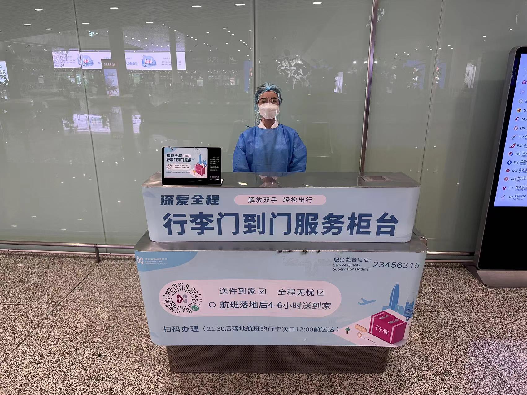 據介紹,有服務需求的旅客可以通過「深圳機場」微信小程序選擇「行李門到門」服務項目進行預約,同時進港旅客也可以直接在深圳機場國內到達7號行李轉盤旁的櫃枱現場辦理「行李門到門」服務。目前,深圳機場國內出港「行李門到門」服務適用於搭乘深航、南航、東航、海航等19家國內航司執飛,由深圳機場始發至北京、上海、成都等17個城市19個機場的航班,國內進港「行李港到門」服務則適用所有國內來深航班。