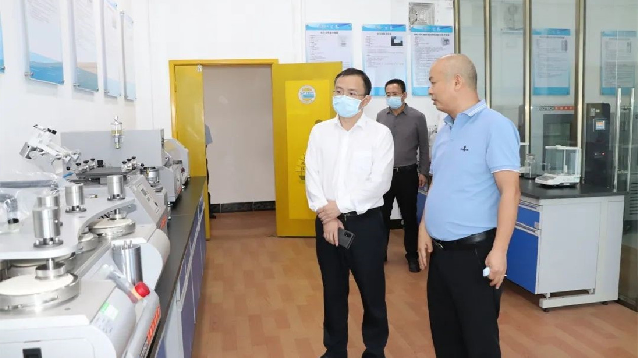 陳濤一行首先走訪了道滘南閣工業區的高新企業廣東匯齊新材料公司,在企業負責人的陪同下參觀了公司的生產車間,成品間和實驗室,詳細了解到產品生產過程、產品存放、產品性能等。