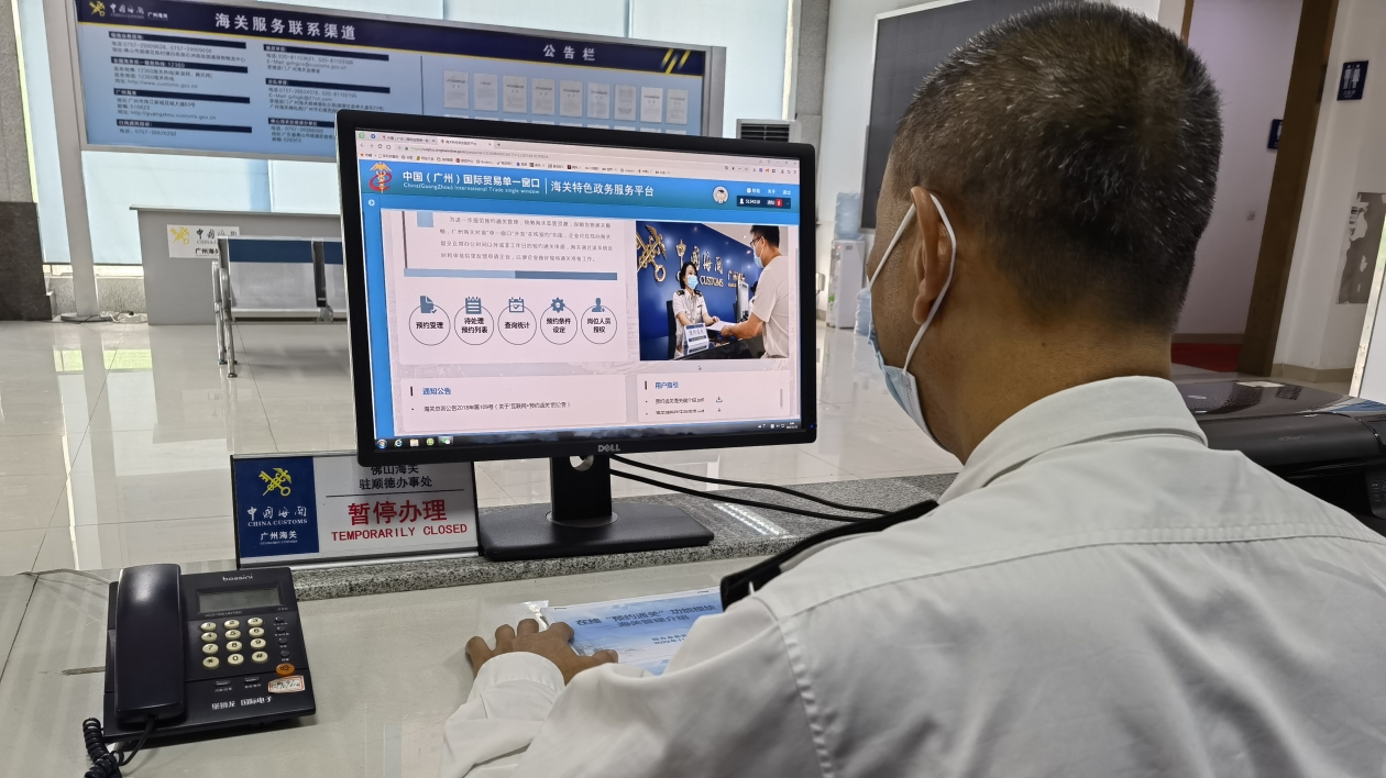 頂圖:廣州海關所屬佛山海關駐順德辦事處通過「單一窗口」線上受理企業預約通關申請。