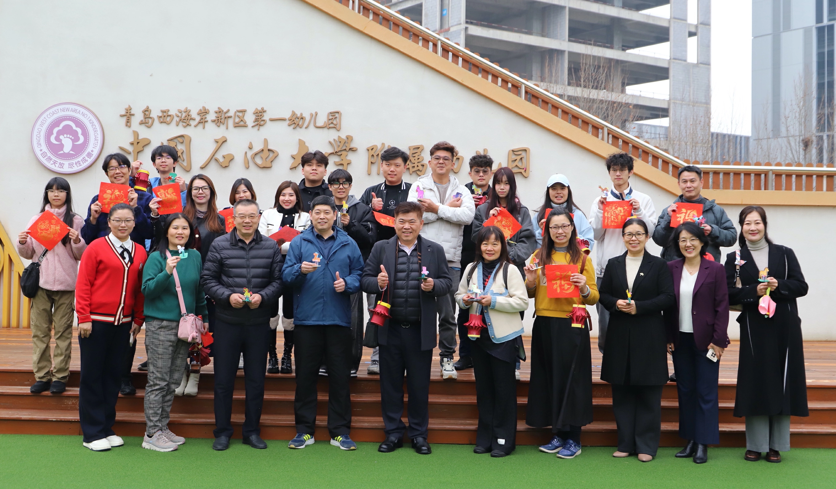 3月2日,「歲啟新章,福馬迎春」台灣幼兒教育參訪團一行19人走進青島西海岸新區第一幼兒園進行訪問交流。正值元宵佳節前夕,開學首日的幼兒園張燈結彩,孩子們以舞龍、剪紙、製作燈籠等方式,展現中華傳統文化在幼兒教育中的生動實踐。