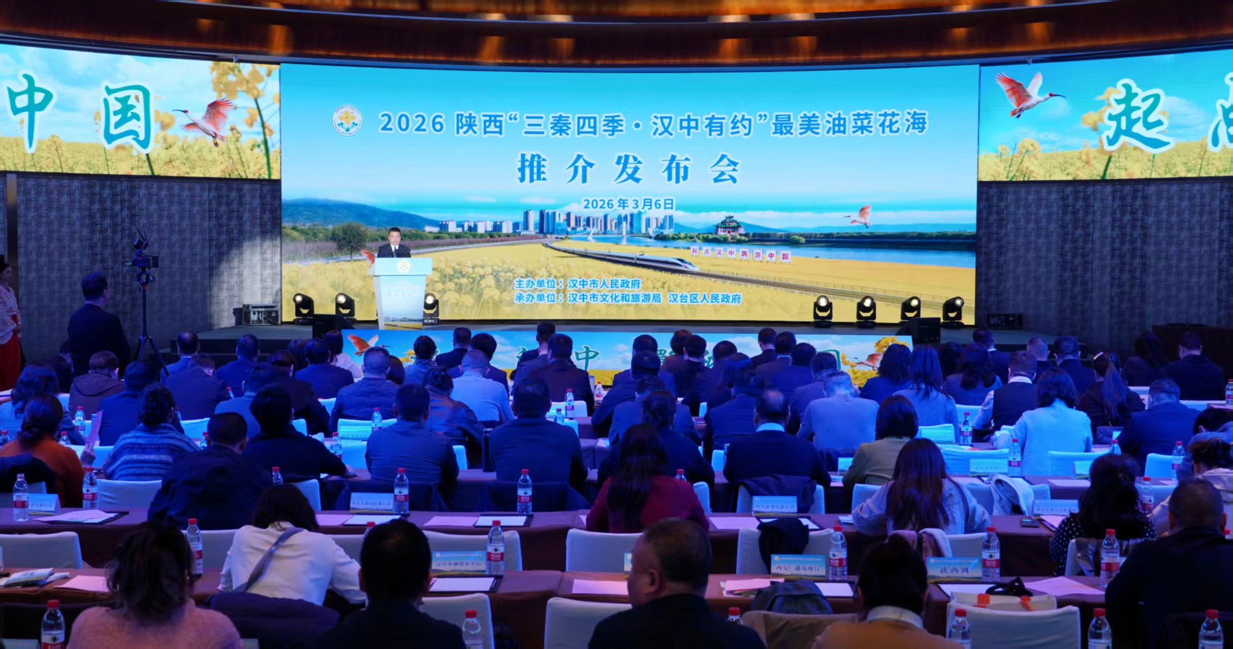 秦巴潑墨千峰翠,天漢鎏金花如海。3月6日,2026陝西「三秦四季·相約漢中」最美油菜花海推介發佈會在西安舉行。
