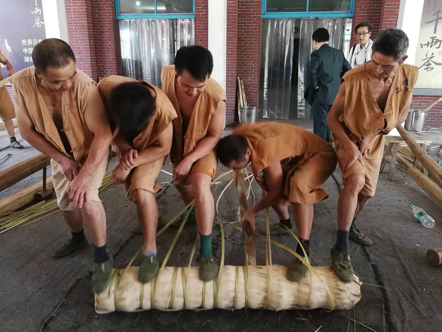 香港文化專家媒體高層湘茶探秘考察團”嘉賓走訪“黑茶之鄉”湖南安化安化千兩茶制作展示