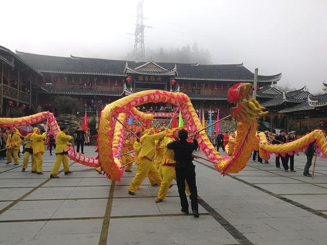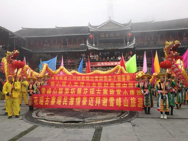 這是雪峰山旅遊公司對花瑤同胞的回拜活動。就在昨天,兩百多花瑤同胞,身穿節日盛裝,抬豬牽羊,舞龍舞獅、一路歡歌笑語,來到楓香瑤寨給雪峰山旅遊公司拜年,感謝公司為花瑤同胞開發旅遊,打開了千年山門,走上了旅遊富民的康庄大道。正月兒里雪峰山上拜大年,瑤漢同胞共聚,企業古寨聯歡,共飲甜甜的米酒,共話黨的恩情,共謀來年旅遊興村大計,這樣的互拜大年活動,已連續開展了五年,成了雪峰山一個最具人氣的文旅融合品牌,吸引了成千上萬的山外遊客前來觀摩和體驗。