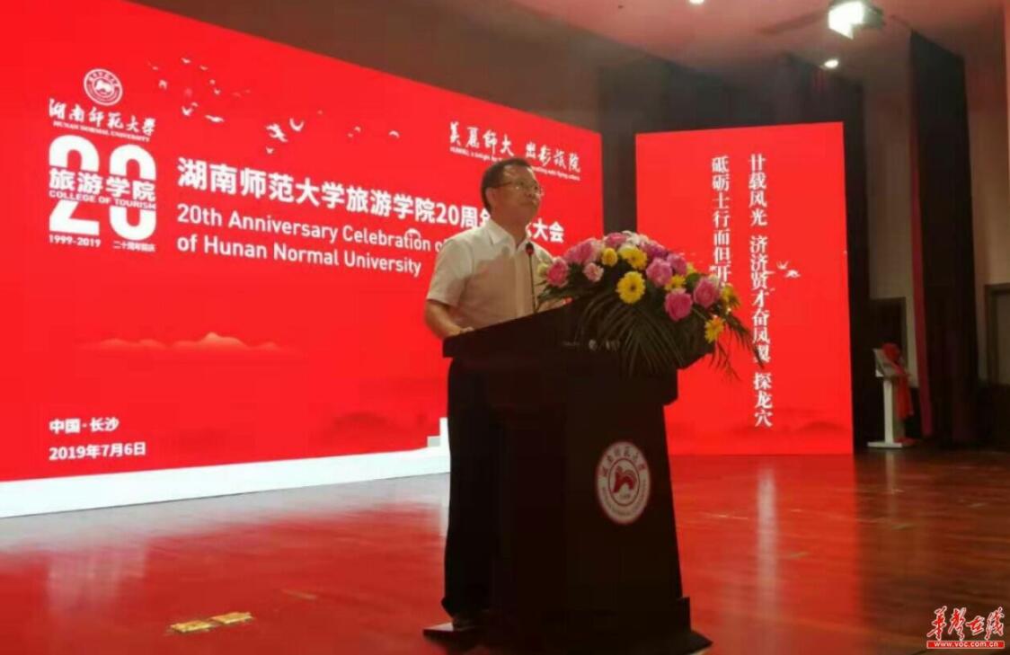 【香港商報網訊】7月6日上午,湖南師範大學旅遊學院建院20周年紀念大會在長沙舉行。湖南省文化和旅遊廳廳長陳獻春出席會議並致辭。他希望湖南師範大學旅遊學院在建院20周年的新起點上,積極適應經濟全球化和旅遊業對外開放的需要,探索建立發展中國家體驗旅遊學、旅遊管理學。